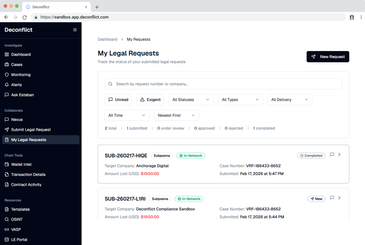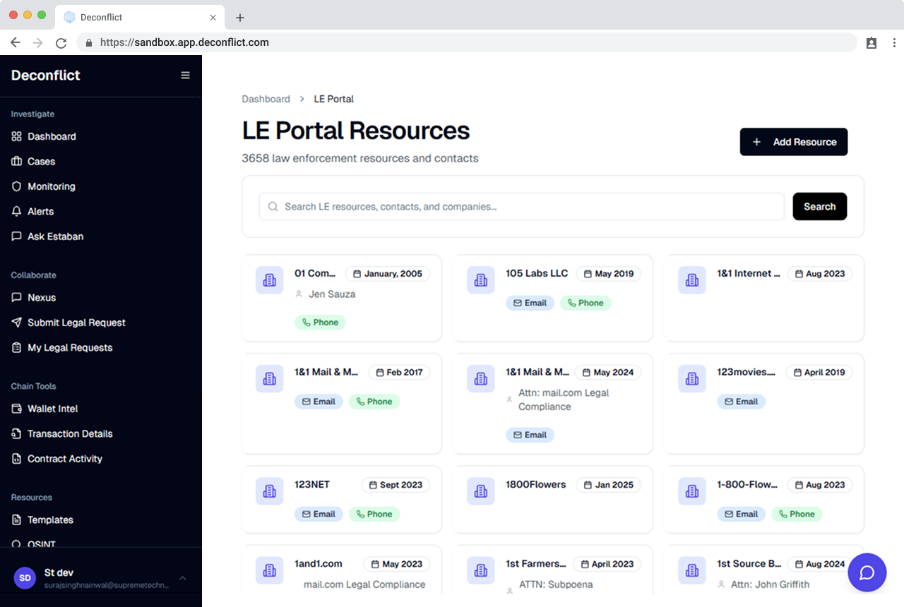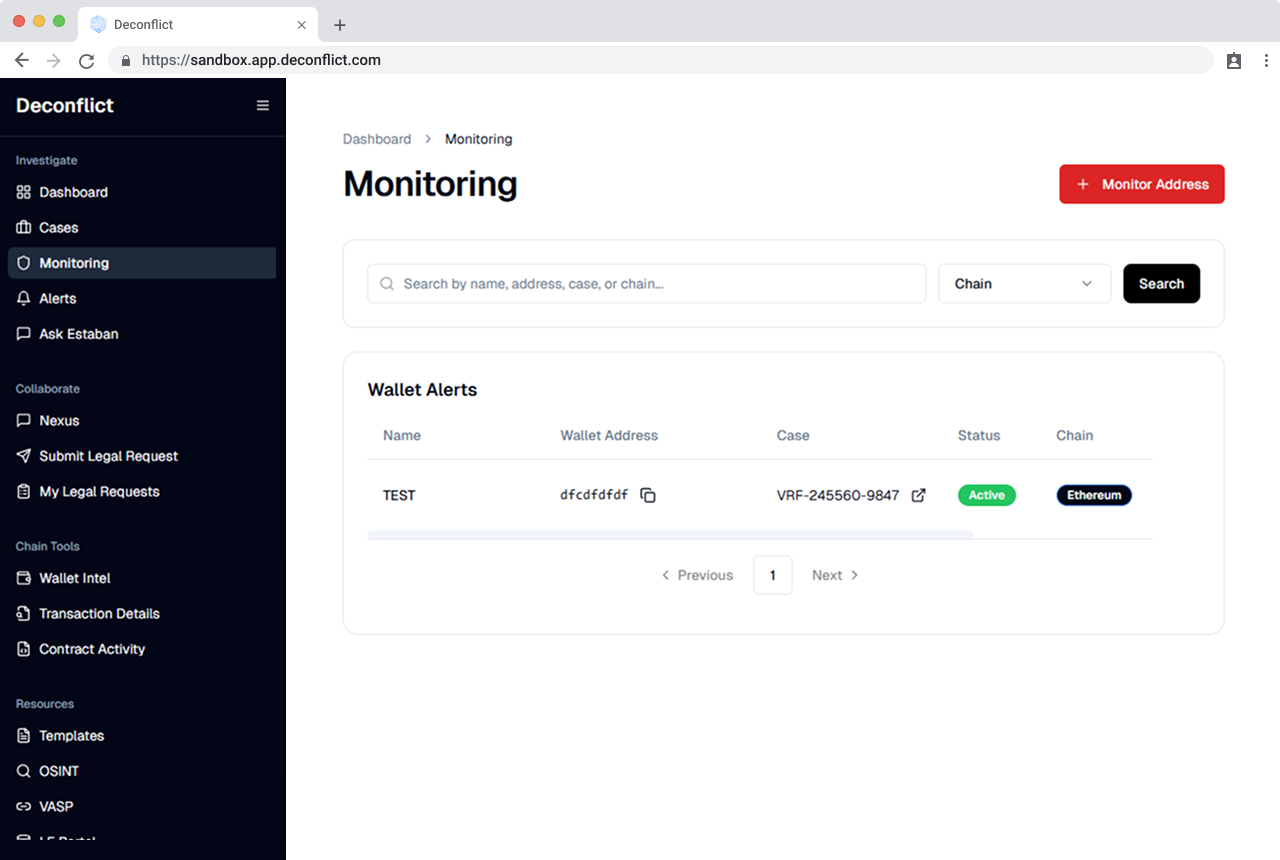 Deconflict is a blockchain security platform that enables users to investigate whether a crypto wallet address has been involved in fraudulent or criminal activities. The platform serves individuals, businesses, and law enforcement agencies by providing wallet verification, fraud reporting capabilities, and real-time case tracking—all within a secure and scalable environment.